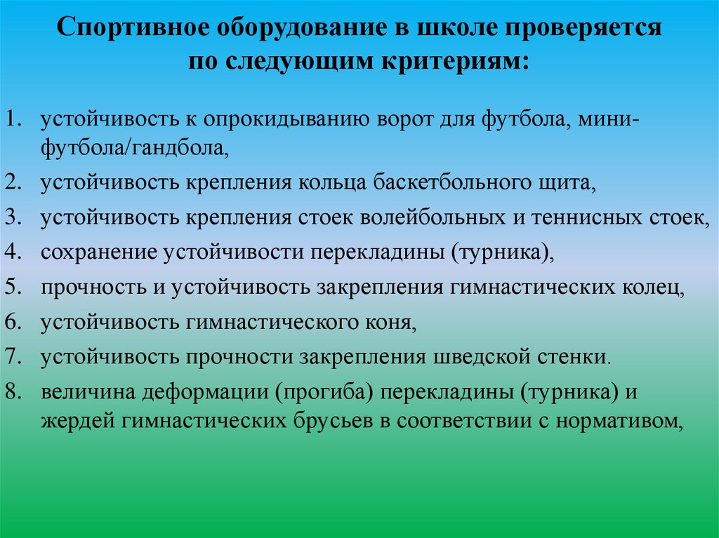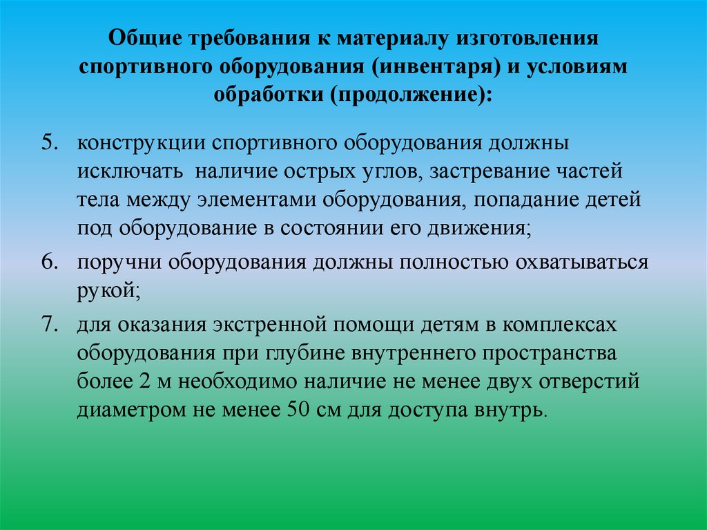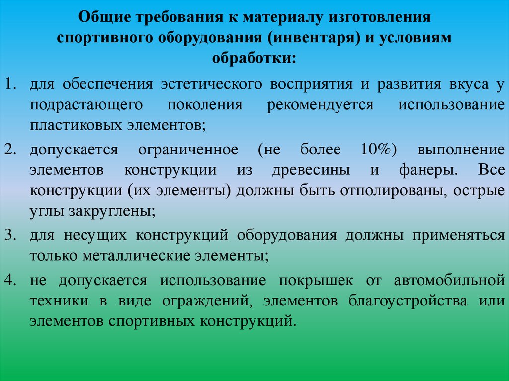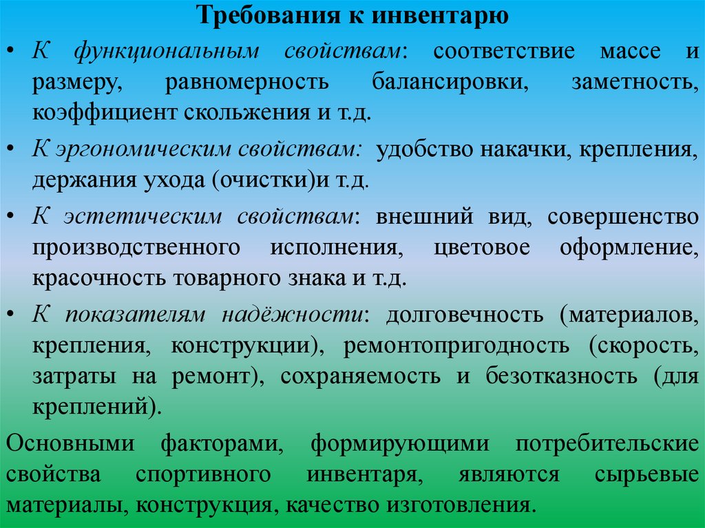 Требования безопасности к спортивному инвентарю иоборудованию: