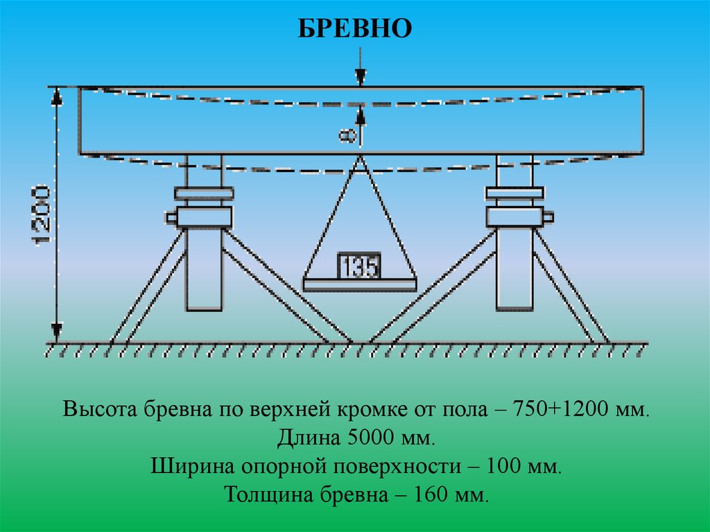 1.2. Бревно под действием груза в 135 кг, установленного к середине бревна на высоте