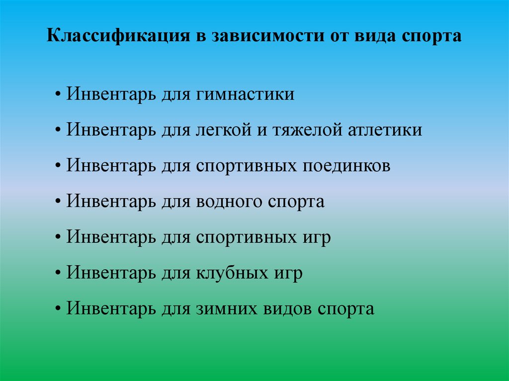 • Инвентарь для гимнастики• Инвентарь для легкой и тяжелой атлетики