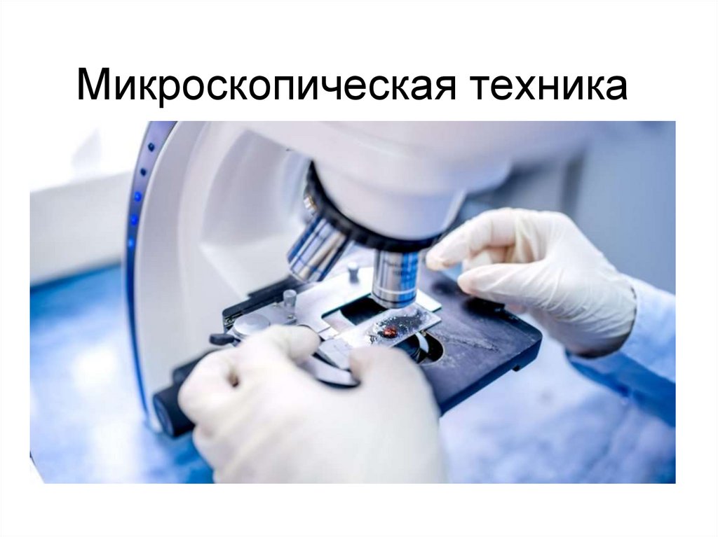 На предметный столик помещают гистологический препарат покровным стеклом вверх.