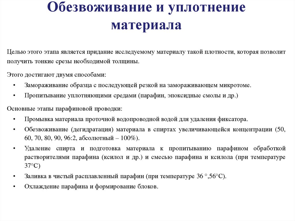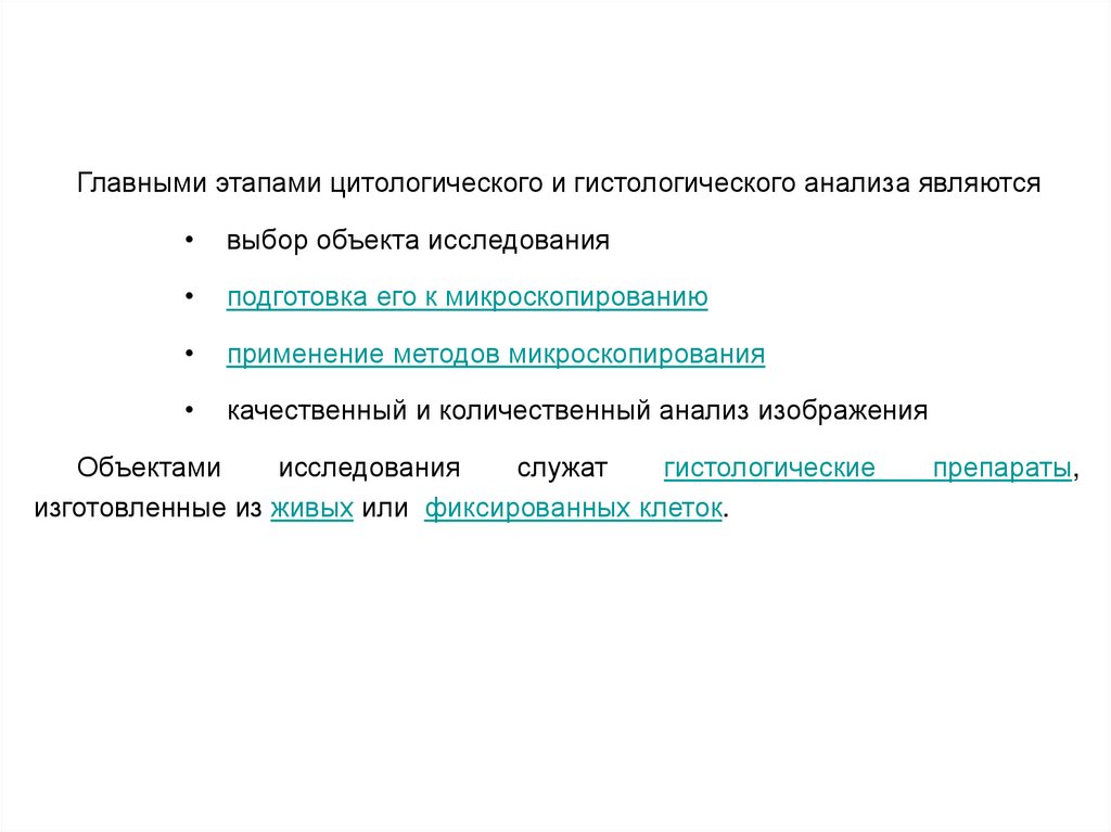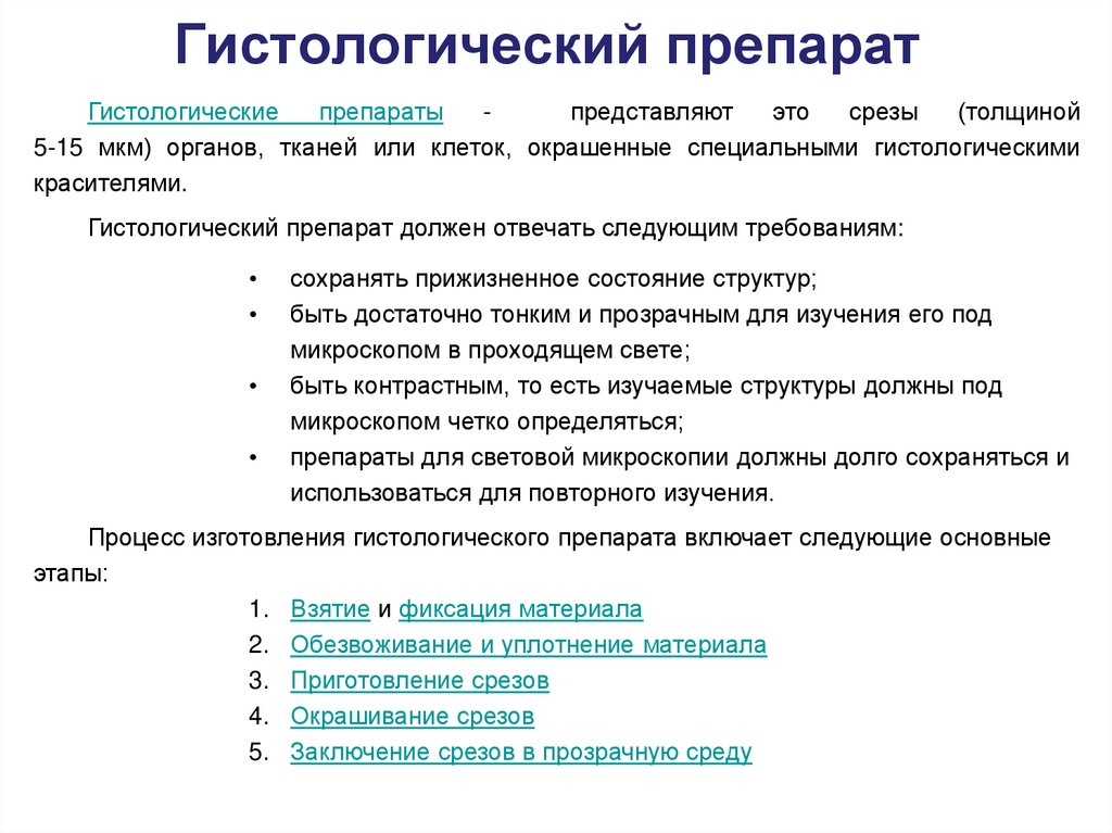 Главными этапами цитологического и гистологического анализа являютсявыбор объекта исследования