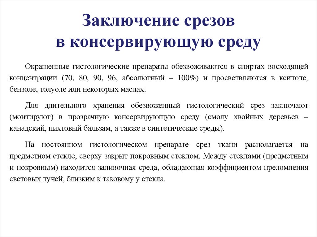предметном стекле, сверху закрыт покровным стеклом. Между стеклами (предметным