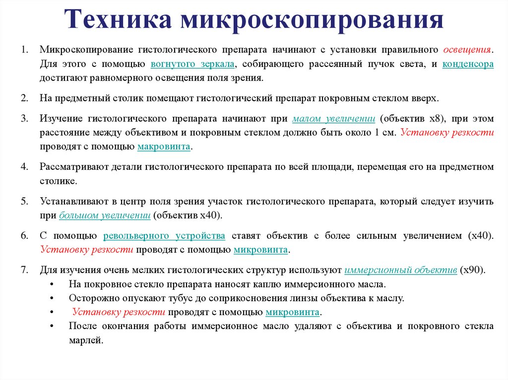1.Микроскопирование гистологического препарата начинают с установки правильного освещения.