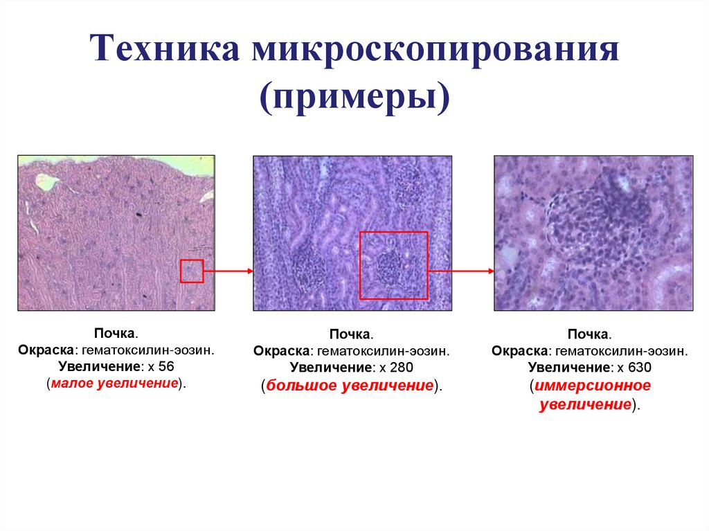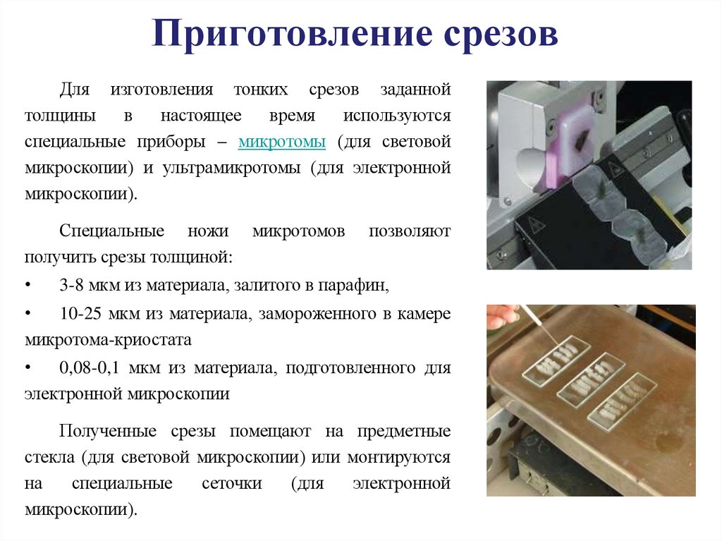5-15 мкм) органов, тканей или клеток, окрашенные специальными гистологическими