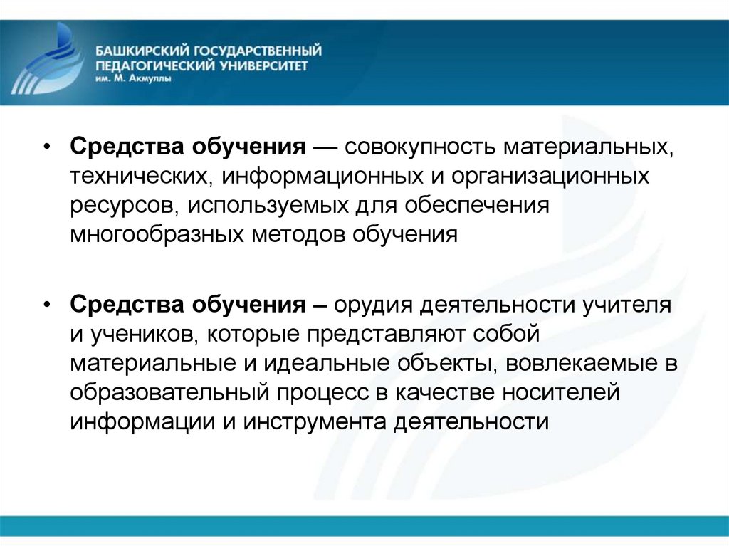 • Средства обучения — совокупность материальных,технических, информационных и организационных