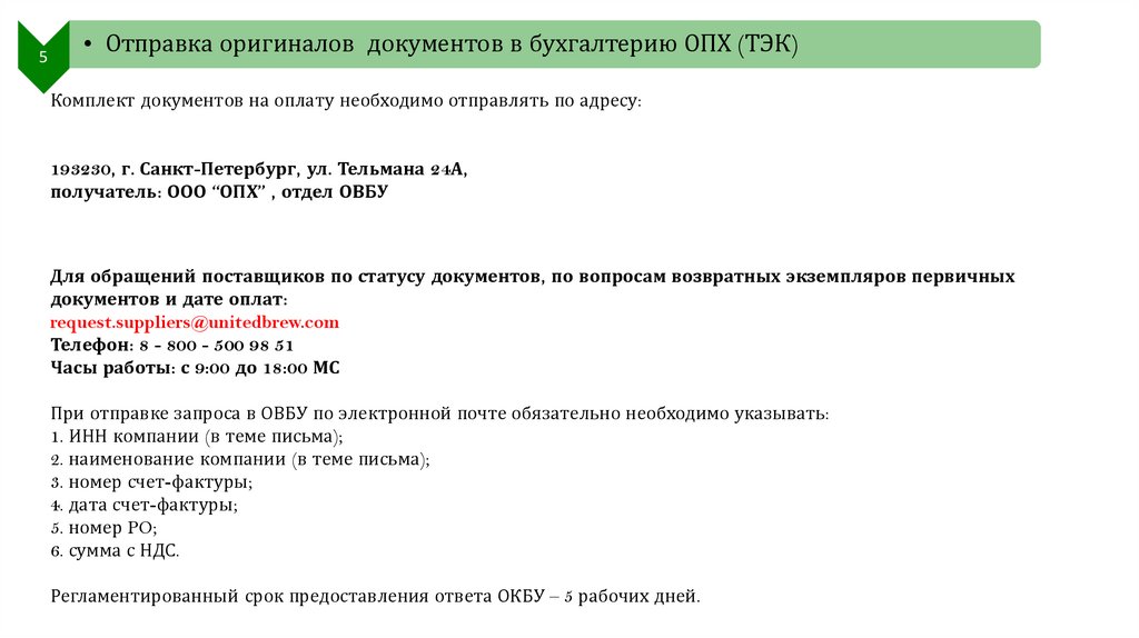 5• Отправка оригиналов документов в бухгалтерию ОПХ (ТЭК)