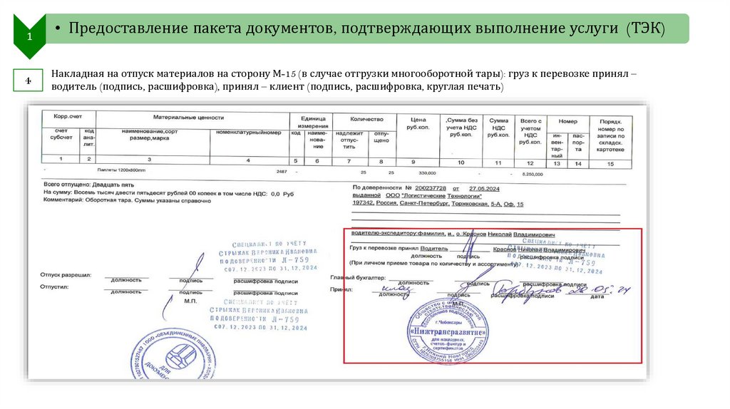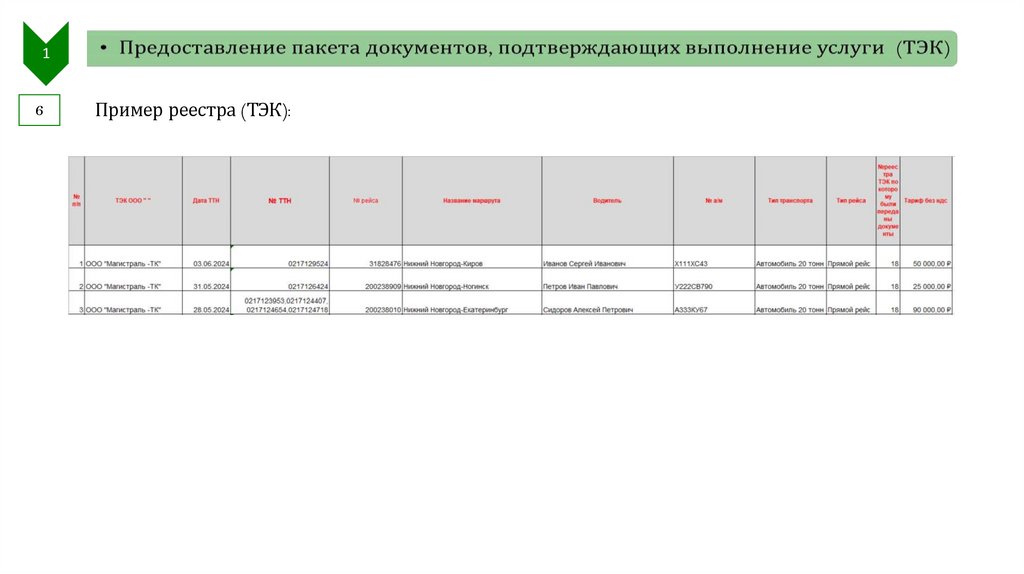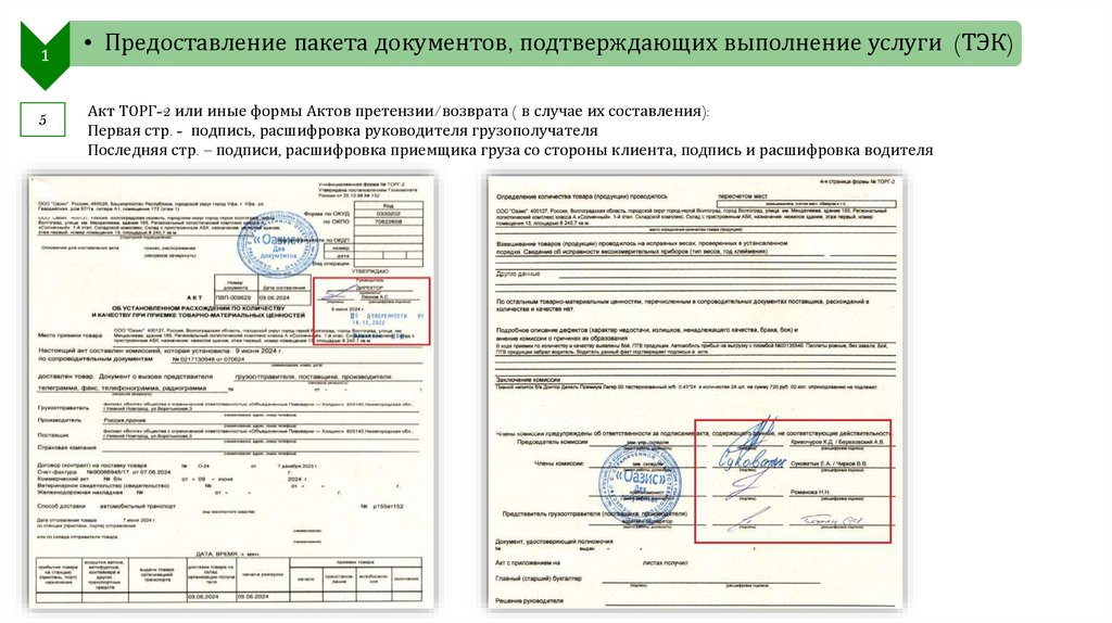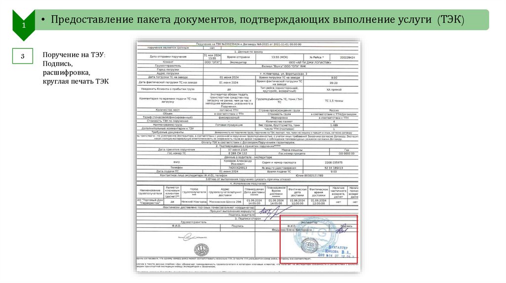1• Предоставление пакета документов, подтверждающих выполнение услуги (ТЭК)