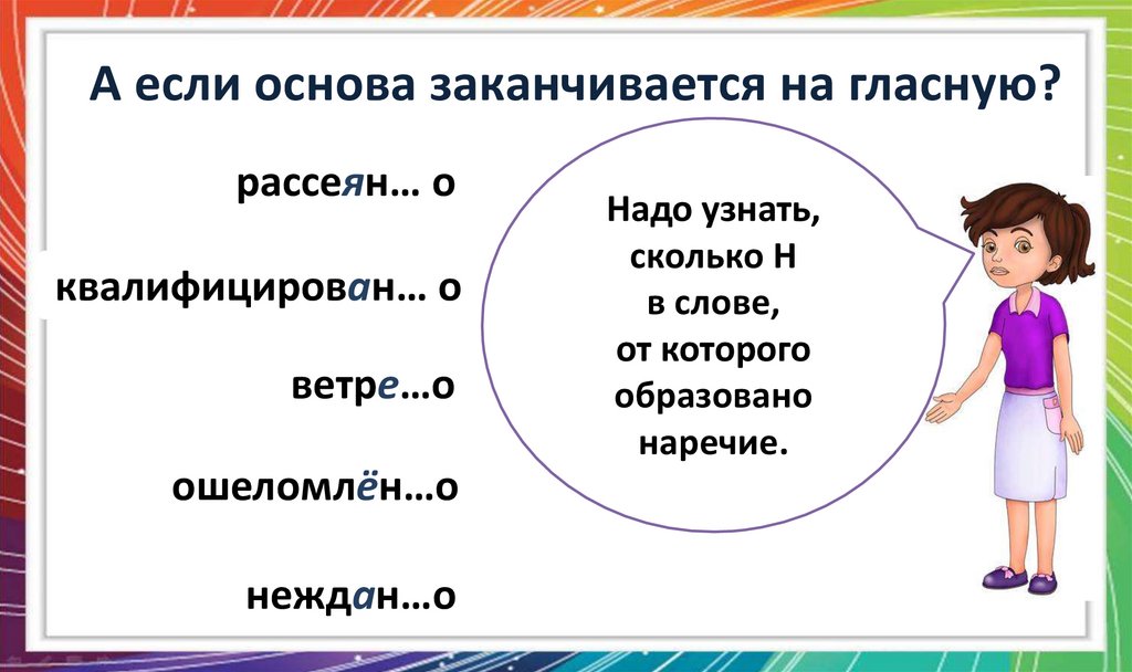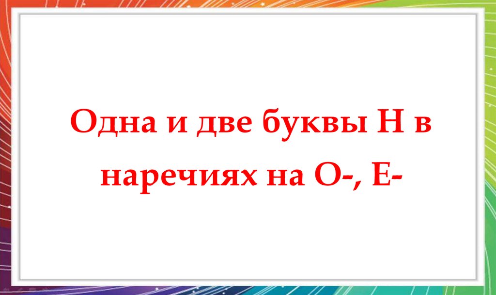 1. Одна и две буквы Н в наречиях на О-, Е-