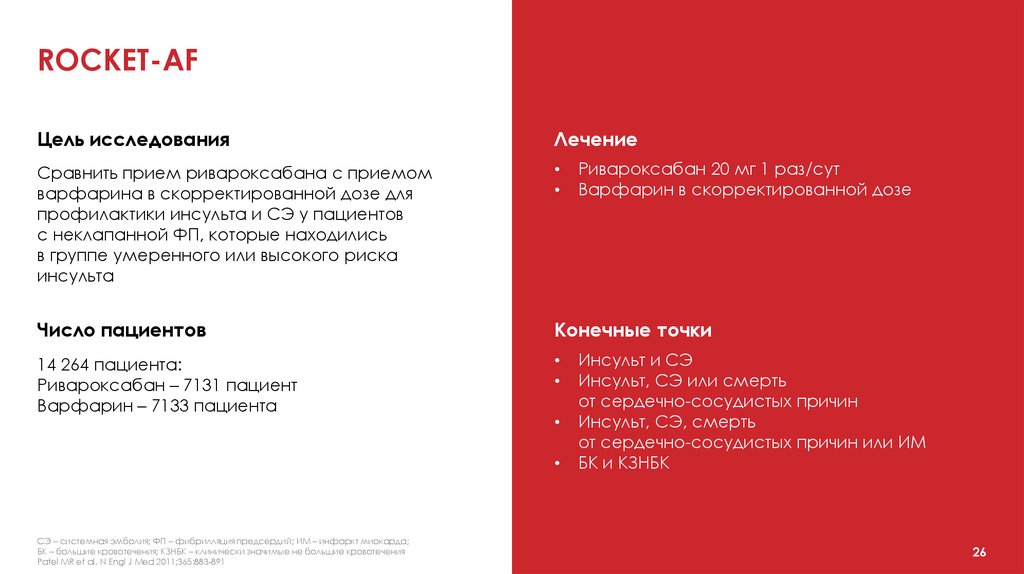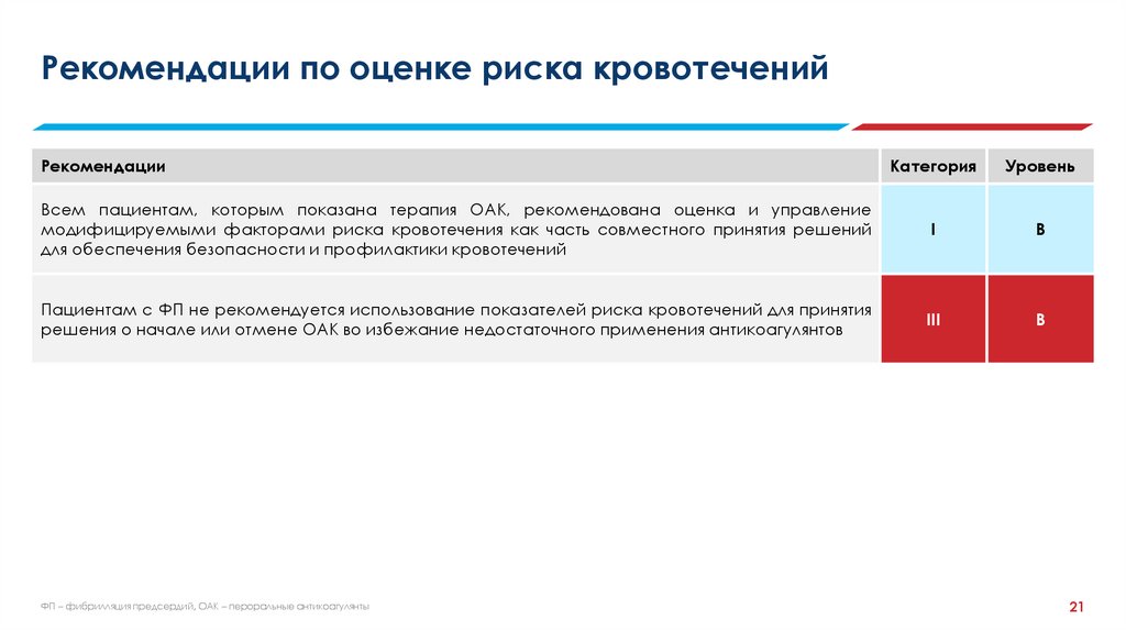 ФП – фибрилляция предсердий; СЭ – системная эмболия; БК – большое кровотечение