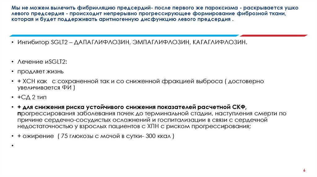 Мы не можем вылечить фибрилляцию предсердий- после первого же пароксизма - раскрывается ушколевого предсердия - происходит непрерывно прогрессирующее формирование фиброзной ткани,