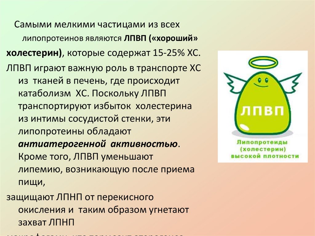ЛПВП принимают избыток холестерина и способны