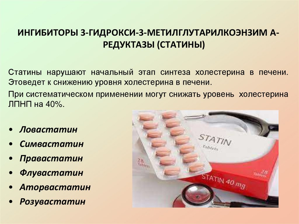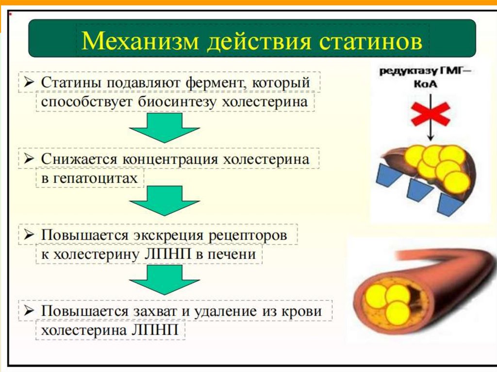 предшественник холестерина (ХС). Основной мишенью действия