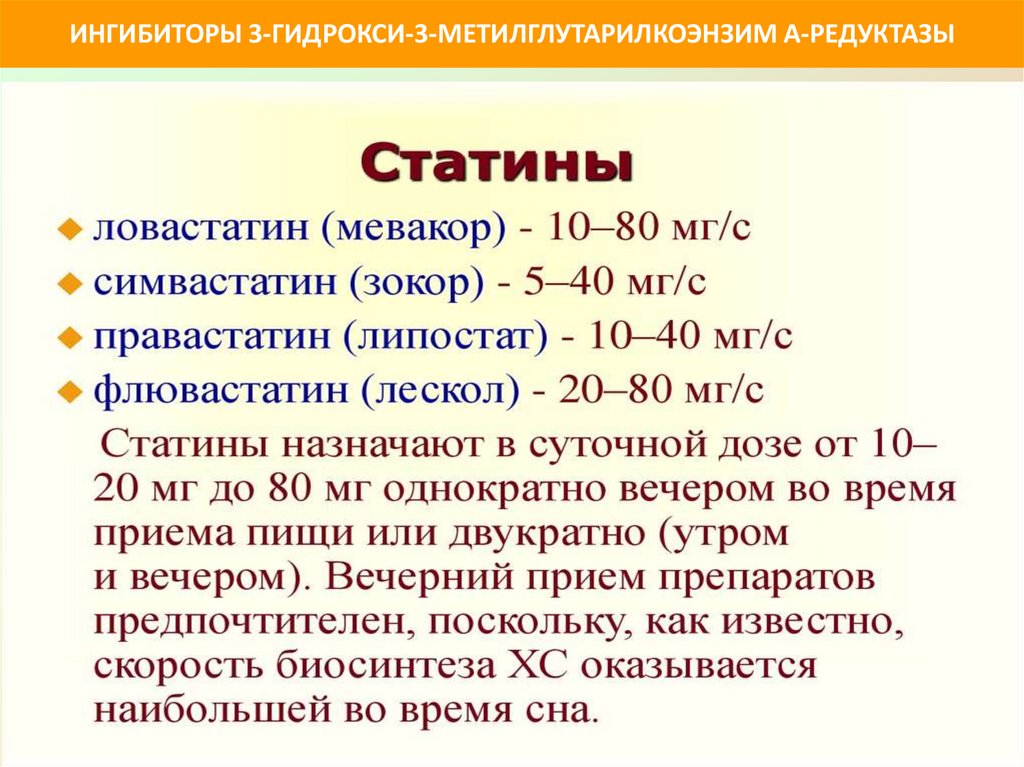 ИНГИБИТОРЫ 3-ГИДРОКСИ-3-МЕТИЛГЛУТАРИЛКОЭНЗИМ А-РЕДУКТАЗЫОсновным показанием для статинов является