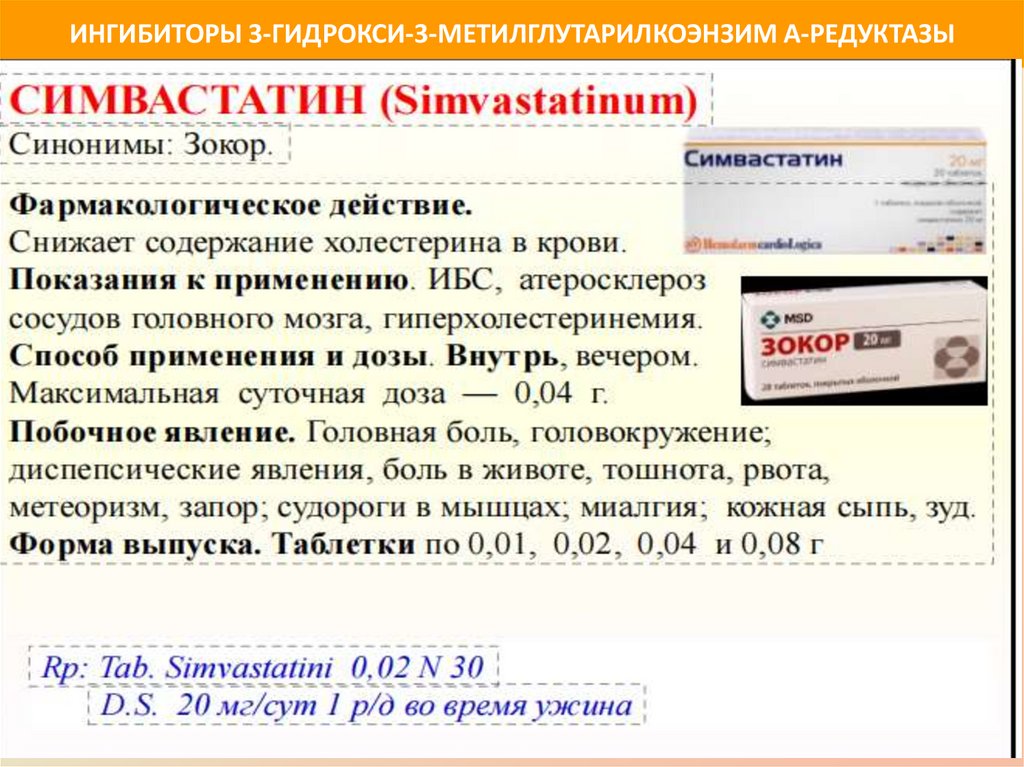 ИНГИБИТОРЫ 3-ГИДРОКСИ-3-МЕТИЛГЛУТАРИЛКОЭНЗИМ А-РЕДУКТАЗЫПрепараты симвастатина: