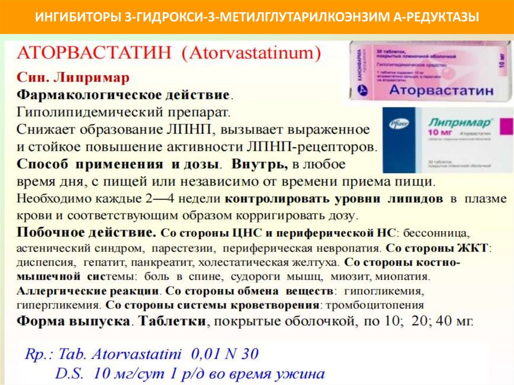 ИНГИБИТОРЫ 3-ГИДРОКСИ-3-МЕТИЛГЛУТАРИЛКОЭНЗИМ А-РЕДУКТАЗЫПрепараты аторвастатина: