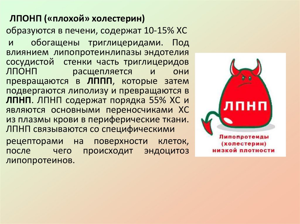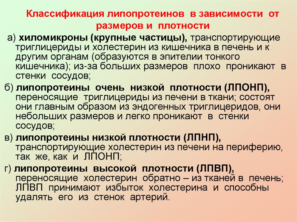 низкой и очень низкой плотности (ЛПНП и ЛПОНТ), они богаты