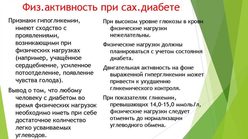 Физ.активность при сах.диабетеПризнаки гипогликемии,