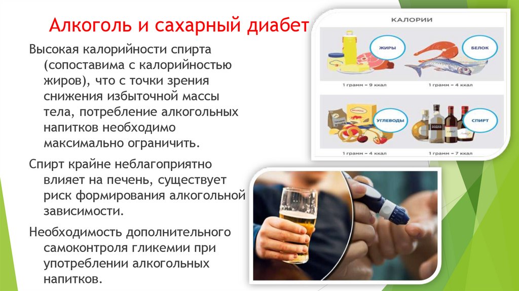 Алкоголь и сахарный диабетВысокая калорийности спирта