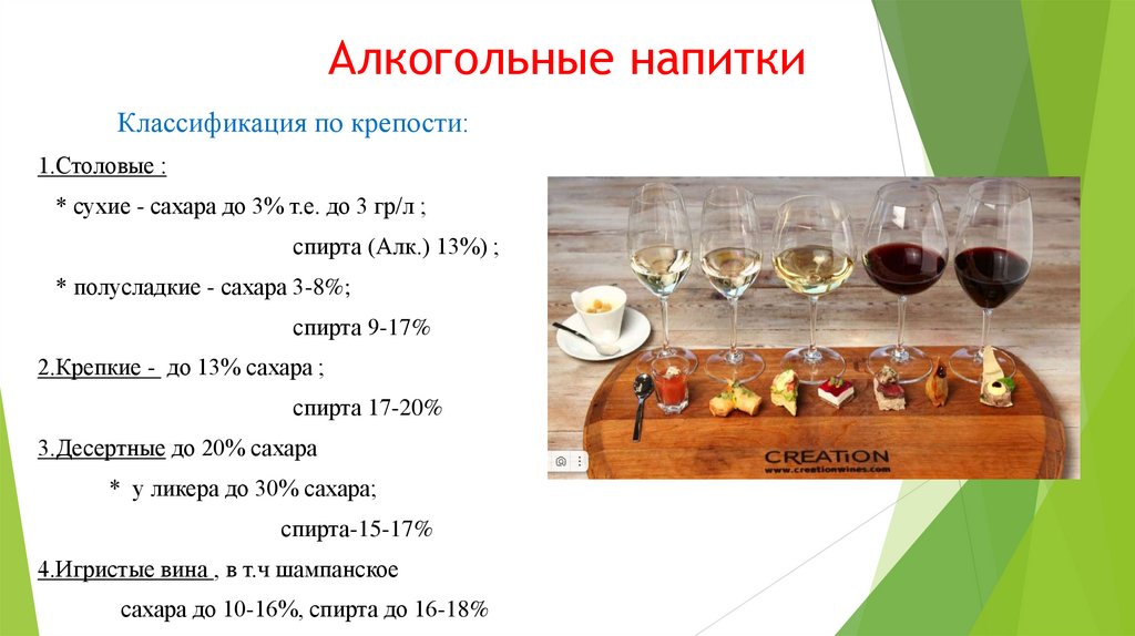 группу «разрешенных» напитков, т.к. действие алкоголя компенсируется