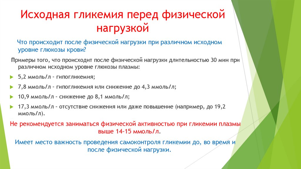 Не рекомендуется заниматься физической активностью при гликемии плазмы