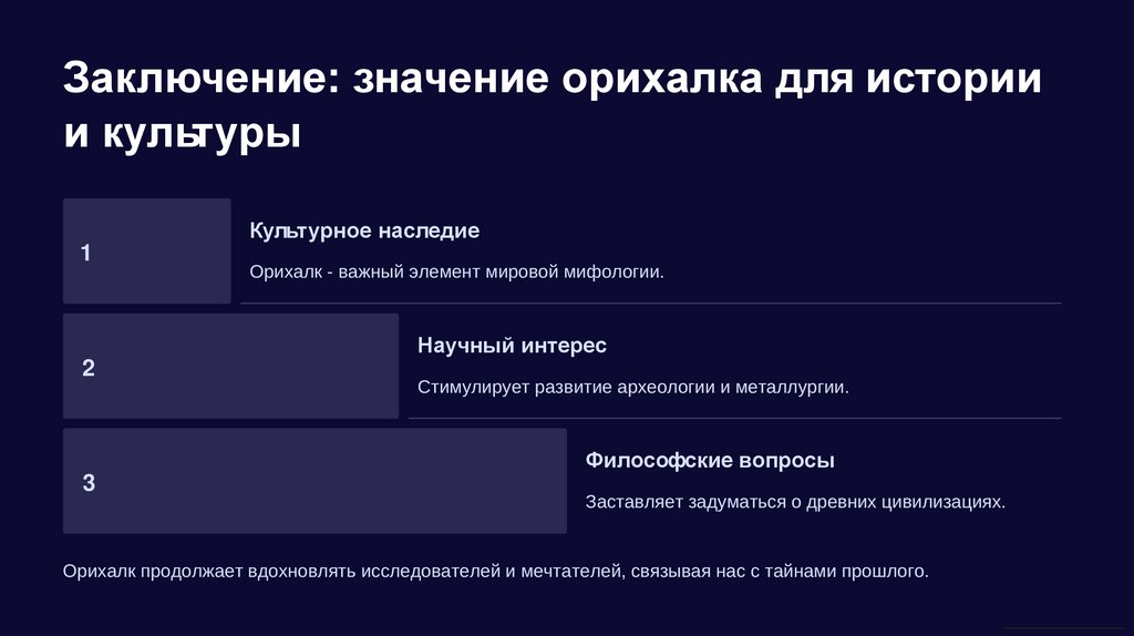 Орихалк продолжает вдохновлять исследователей и мечтателей, связывая нас с тайнами прошлого.