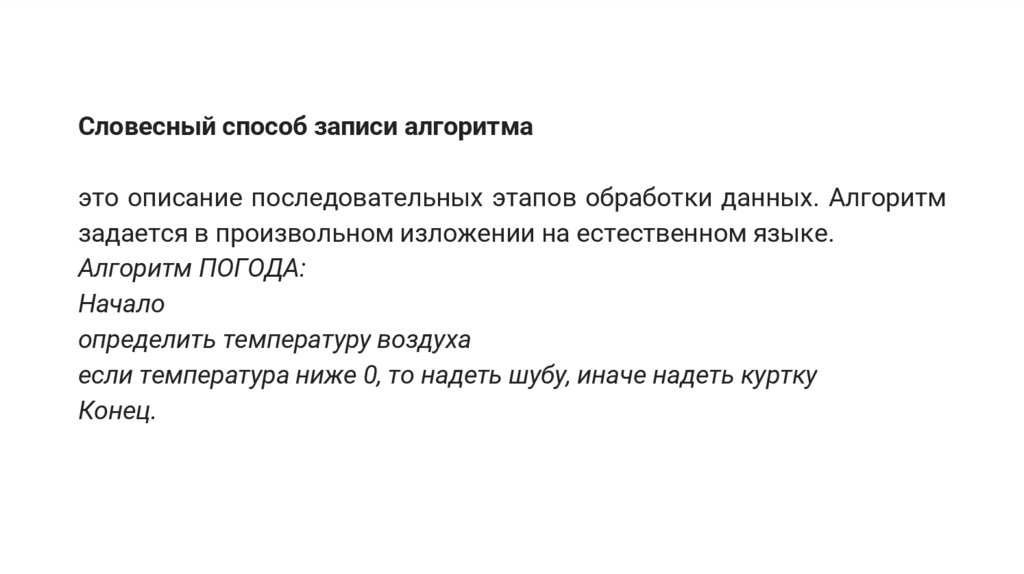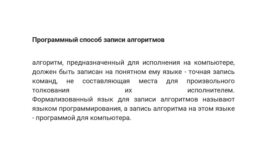 Задача исполнителя — точная реализация уже имеющегосяалгоритма.