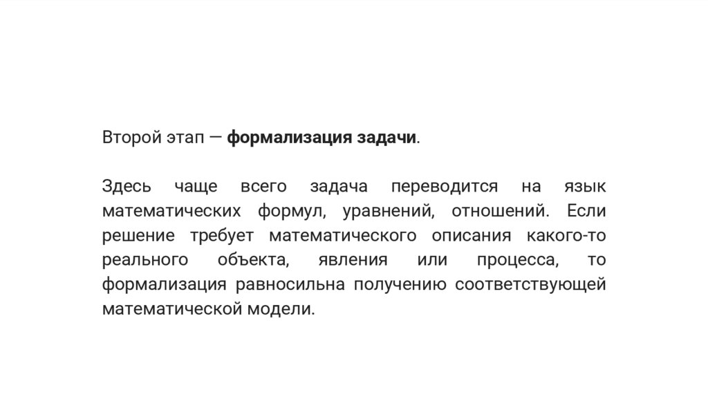 Второй этап — формализация задачи.Здесь чаще всего задача переводится на язык
