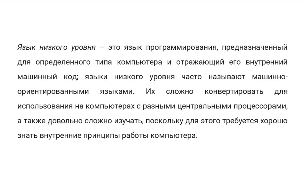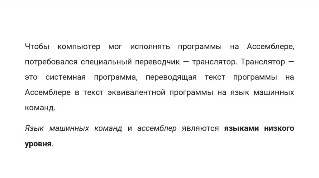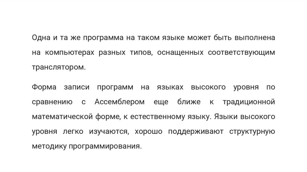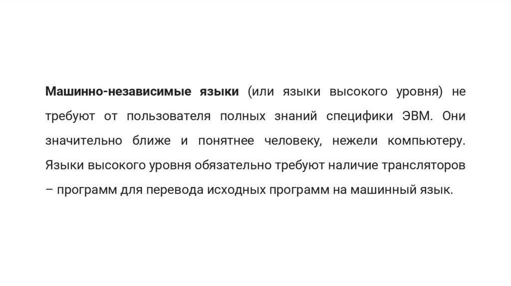 Реализовать тот или иной язык программирования на ЭВМ — этозначит создать транслятор с этого языка для данной ЭВМ (тут