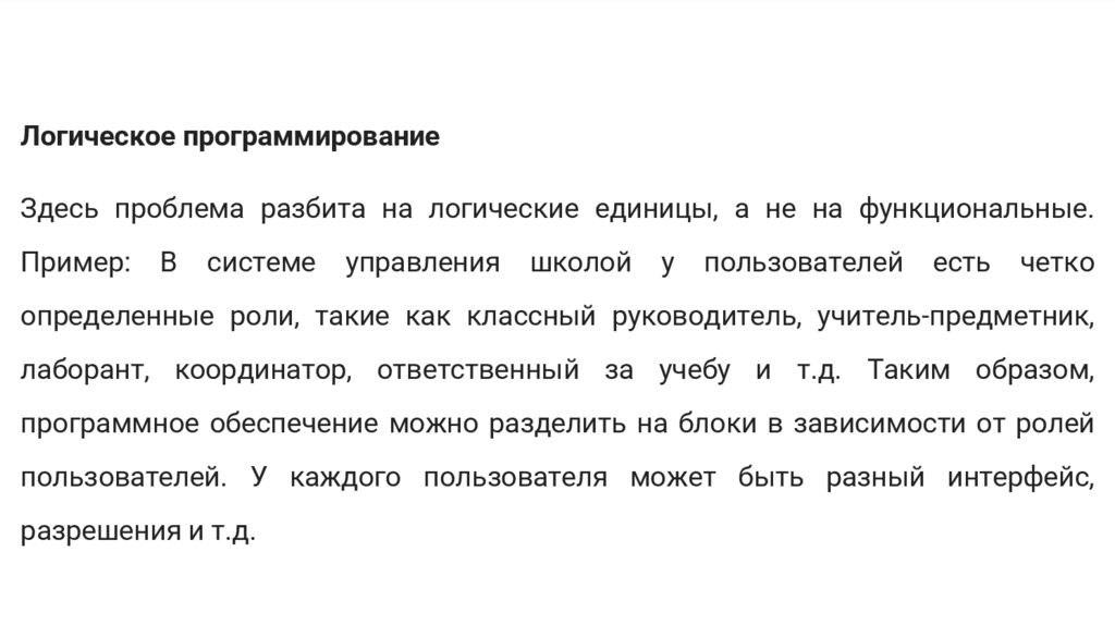 Логическое программированиеЗдесь проблема разбита на логические единицы, а не на функциональные.