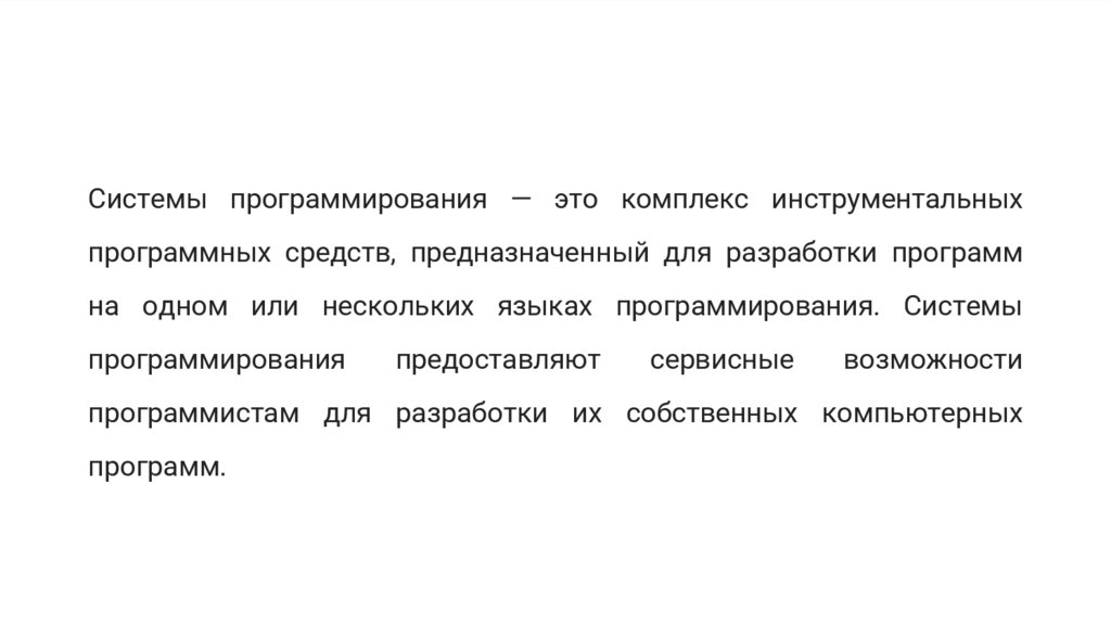 Системы программирования — это комплекс инструментальныхпрограммных средств, предназначенный для разработки программ
