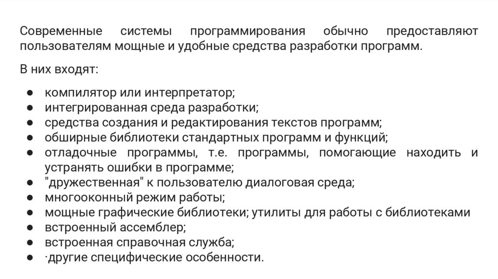 Современные системы программирования обычно предоставляютпользователям мощные и удобные средства разработки программ.