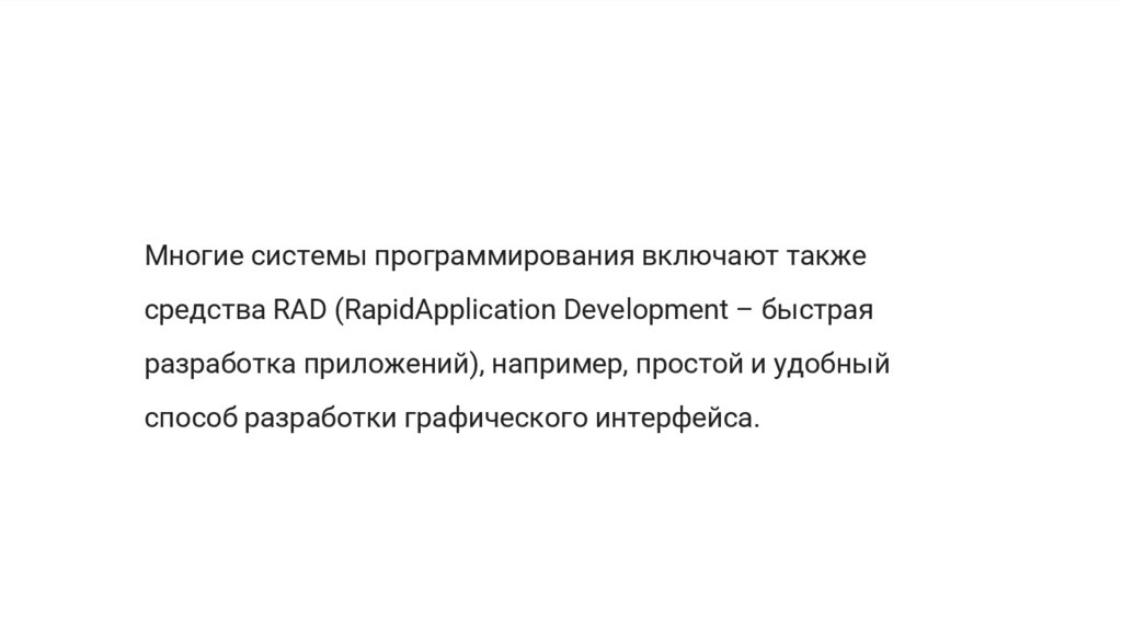 Многие системы программирования включают такжесредства RAD (RapidApplication Development – быстрая