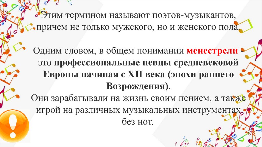 Одним словом, в общем понимании менестрели это профессиональные певцы средневековой