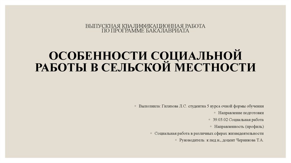 Изучено понятие и сущность социальной работы в сельской местности. Было
