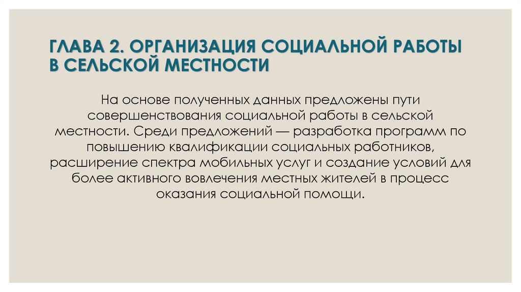 ГЛАВА 2. ОРГАНИЗАЦИЯ СОЦИАЛЬНОЙ РАБОТЫВ СЕЛЬСКОЙ МЕСТНОСТИ