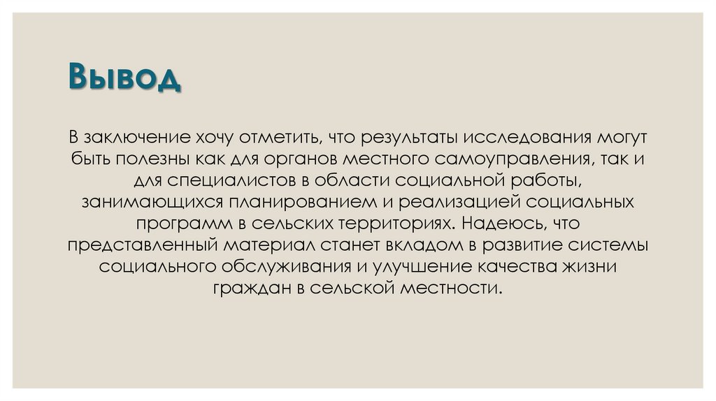 ВыводВ заключение хочу отметить, что результаты исследования могут