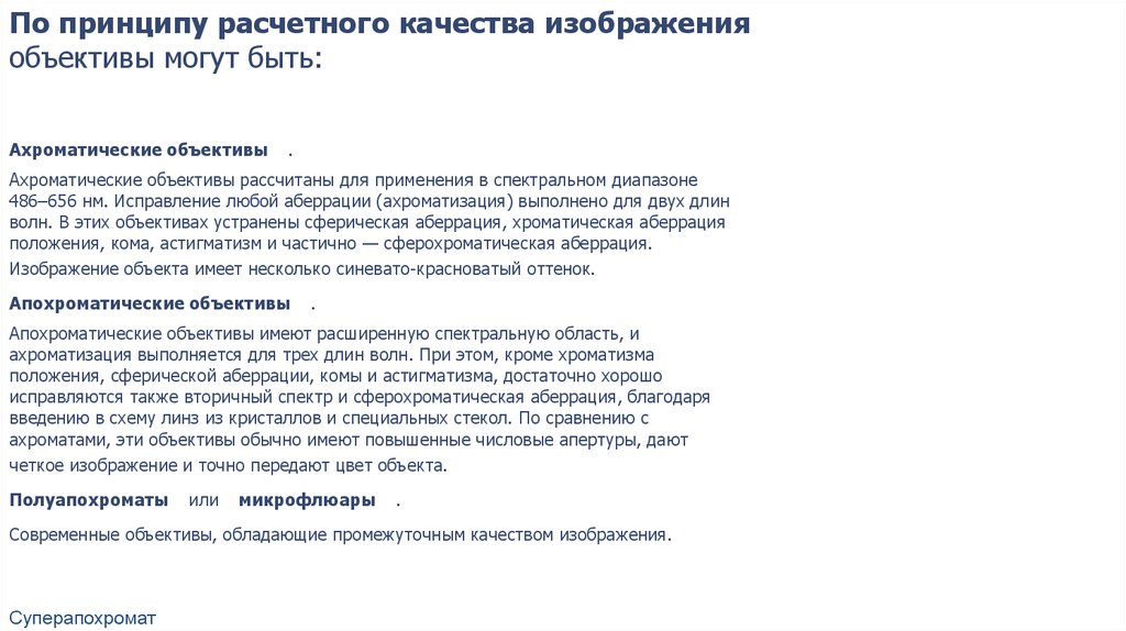 ахроматами, эти объективы обычно имеют повышенные числовые апертуры, дают
