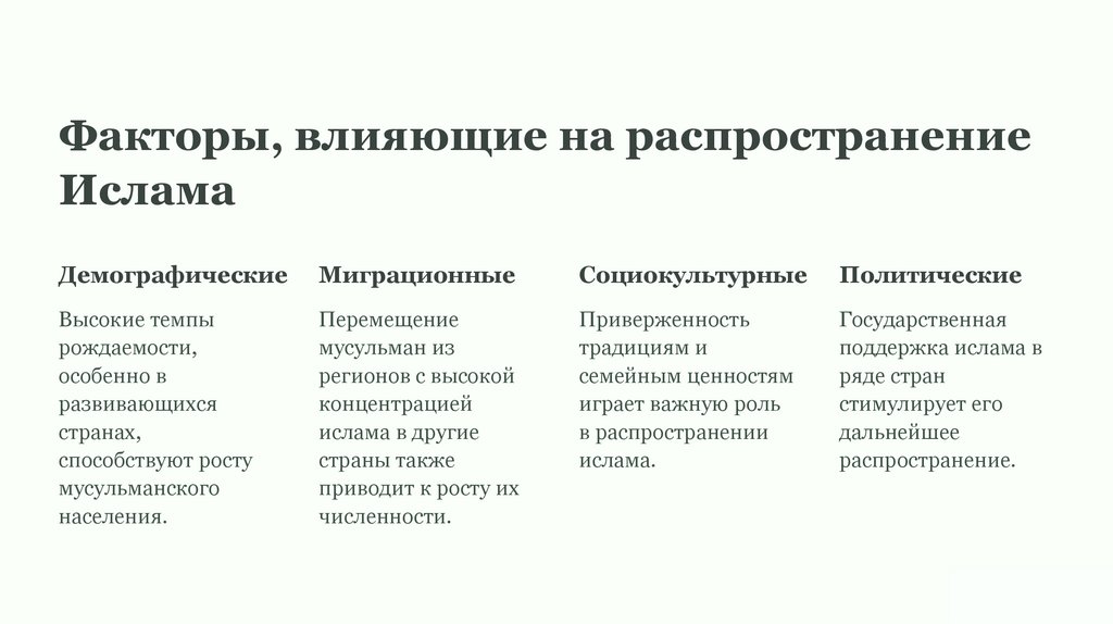 Факторы, влияющие на распространениеИслама