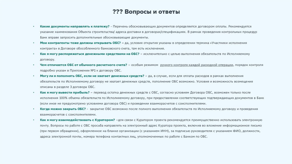 Мои контрагенты тоже должны открывать ОБС? – да, условия открытия указаны в определении термина «Участники исполнения
