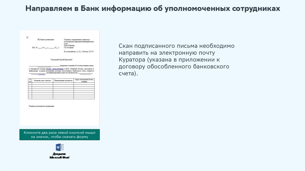 Направляем в Банк информацию об уполномоченных сотрудникахСкан подписанного письма необходимо