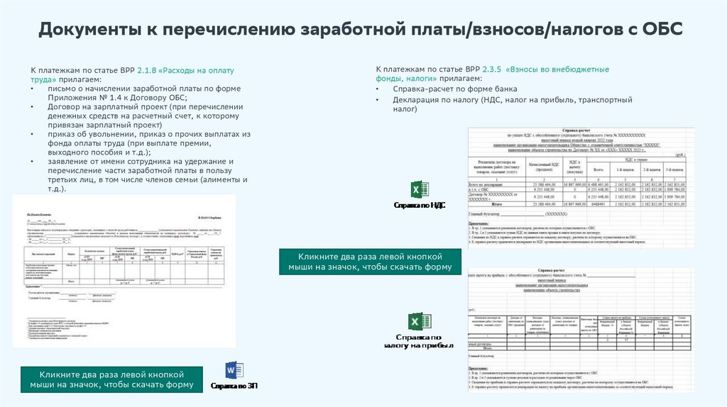 Документы к перечислению заработной платы/взносов/налогов с ОБСК платежкам по статье ВРР 2.1.8 «Расходы на оплату