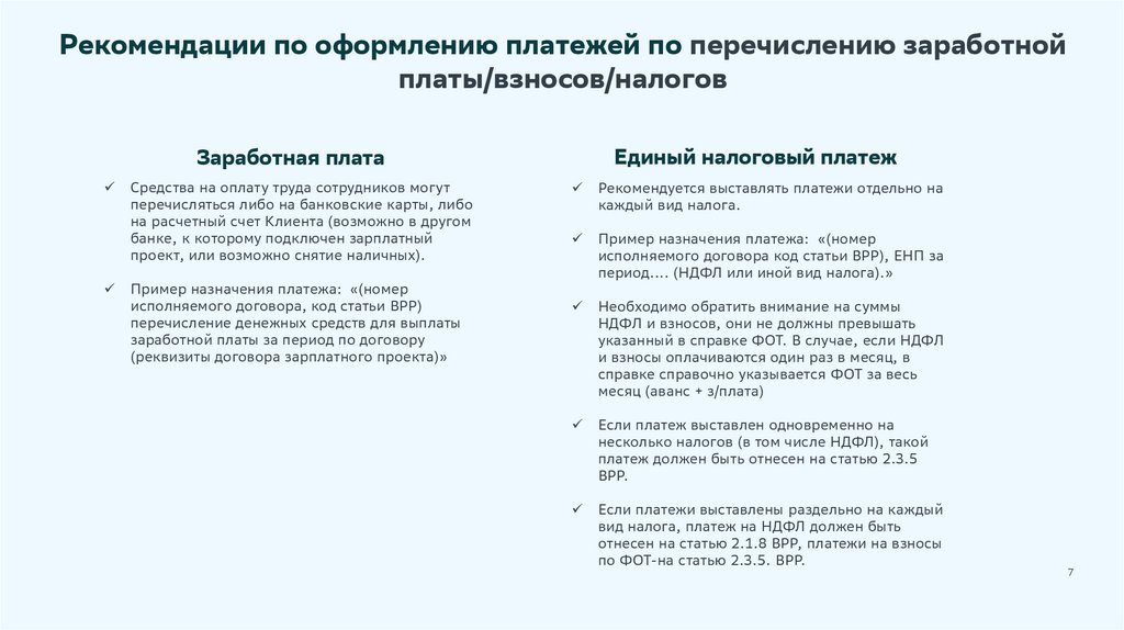 Рекомендации по оформлению платежей по перечислению заработнойплаты/взносов/налогов