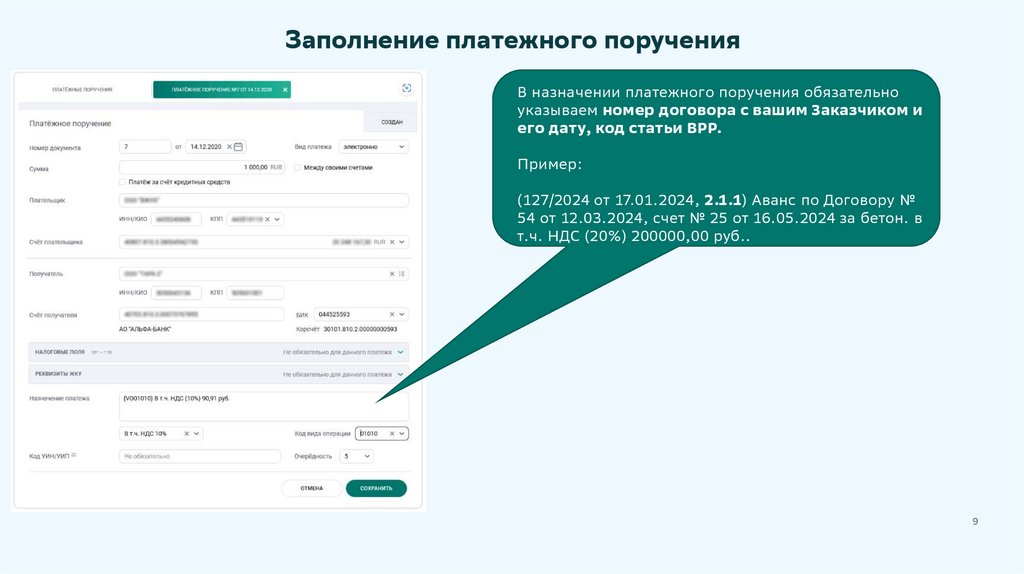 с платежным поручением, для проведения