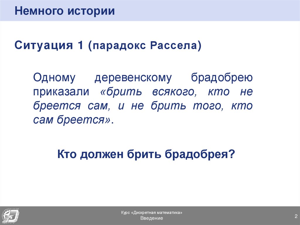 Немного историиСитуация 1 ( парадокс Рассела )