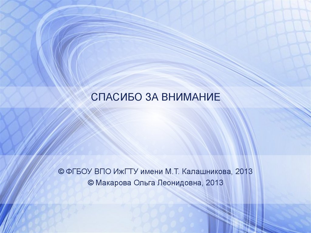 СПАСИБО ЗА ВНИМАНИЕ© ФГБОУ ВПО ИжГТУ имени М.Т. Калашникова, 2013