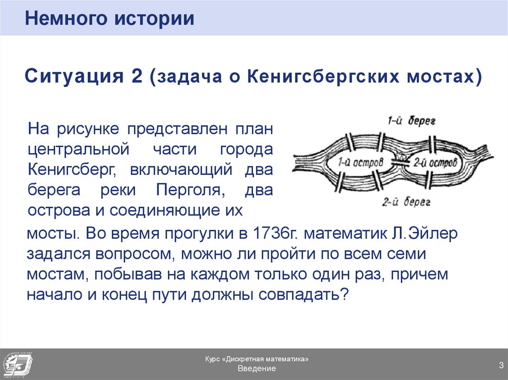 Немного историиСитуация 2 ( задача о Кенигсбергских мостах )