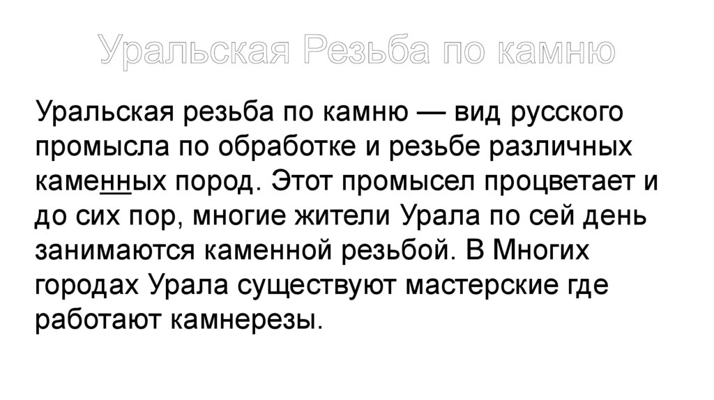 Уральская резьба по камню — вид русскогопромысла по обработке и резьбе различных