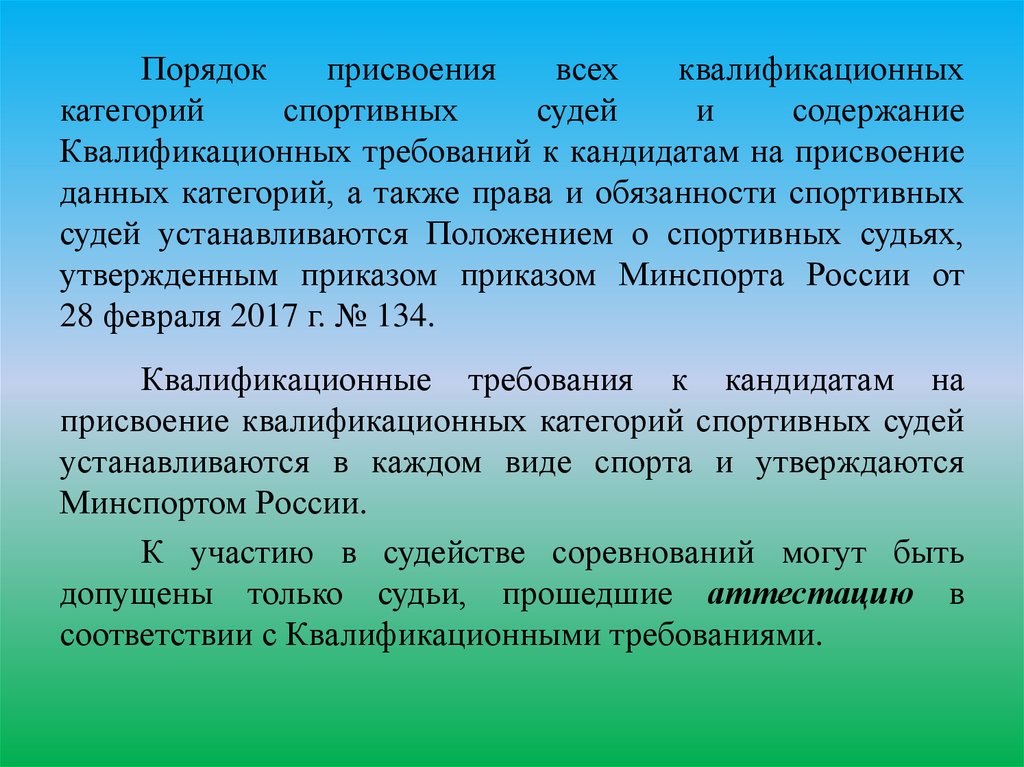 3. Порядок присвоения всех квалификационных категорий спортивных судей и содержание Квалификационных требований к кандидатам на