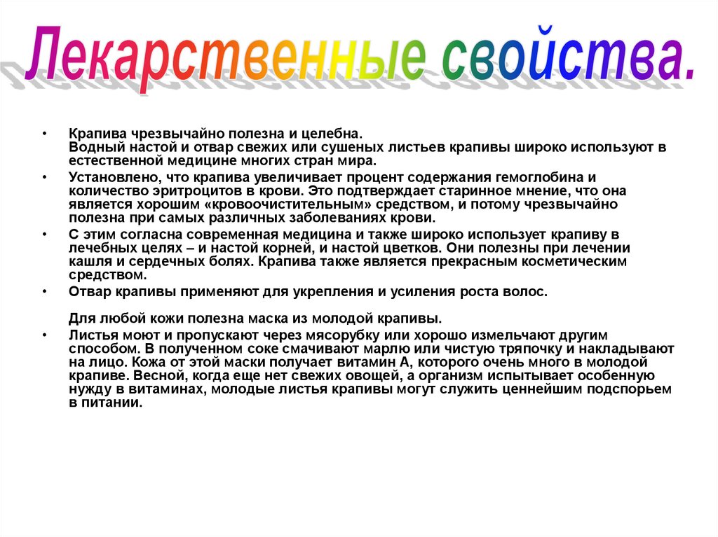 кашля и сердечных болях. Крапива также является прекрасным косметическим