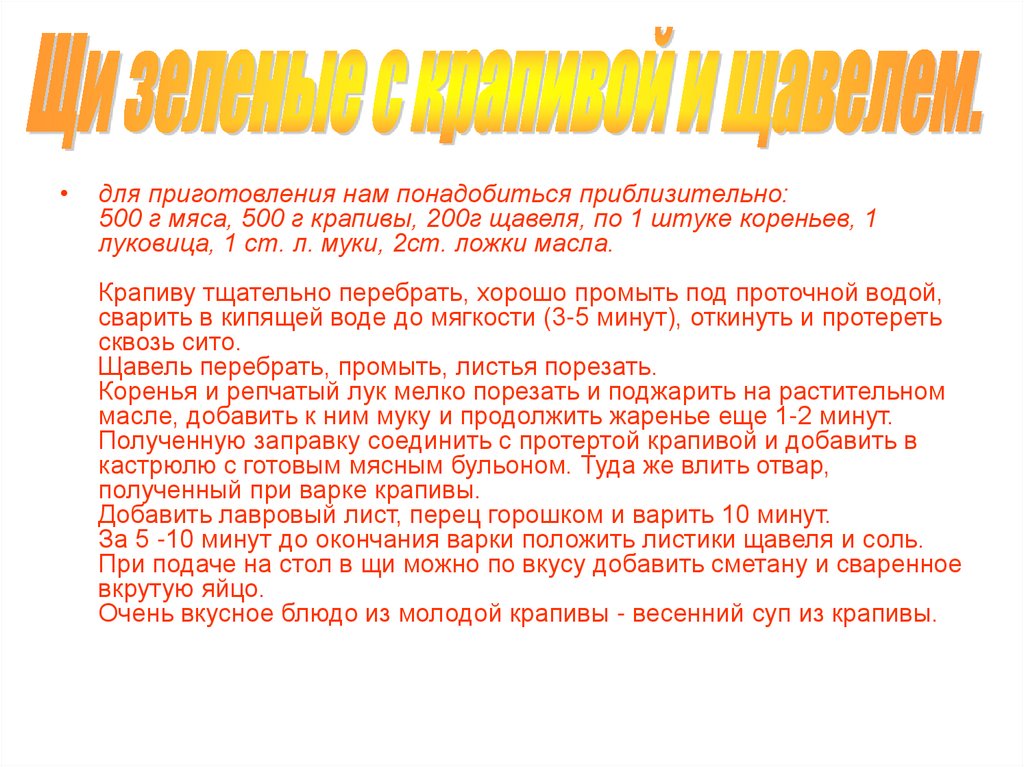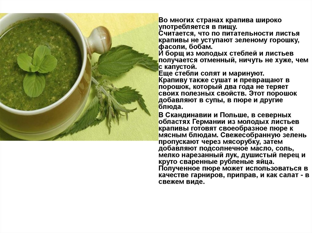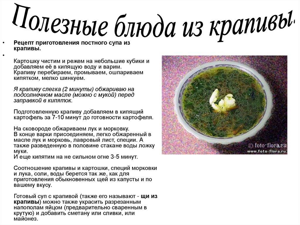 крапиве. Весной, когда еще нет свежих овощей, а организм испытывает особенную